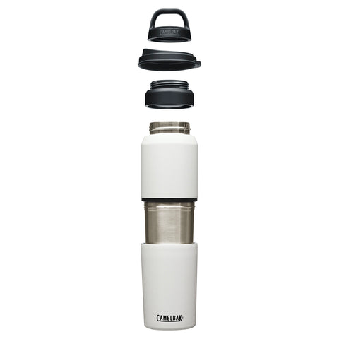 The ultimate beverage multi-tasker for on-the-go sustainability and versatility. MultiBev is a 2-in-1 vessel that serves as both a water bottle and detachable travel cup, for convenience you can carry. Use for coffee in the morning, water throughout the day, and camp-out beers with friends at night. Drink. Share. Rinse and repeat. Double wall vacuum insulated stainless steel keeps beverages hot or cold for hours. A powder coat finish and non-slip silicone base create a highly durable exterior. The leak-proof Pak™ Cap tucks the Roll and Fold Lid neatly out of sight until paired with the removable cup, or stores small essentials like a tea bag or snacks. Easy-to-clean, dishwasher safe design, and BPA, BPS & BPF free. Feel good about choosing a sustainable solution to disposable waste.